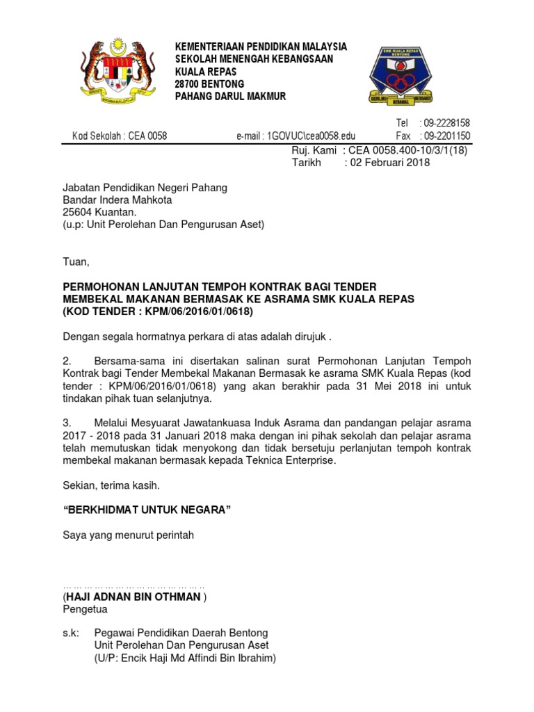 Contoh Surat Kuasa Perpanjangan STNK Ini Cara Membuatnya. Dengan segala hormatnya saya merujuk perkara diatas. Kontrak bagi tender membekal makanan bermasak ke asrama smk kuala repas kod tender.